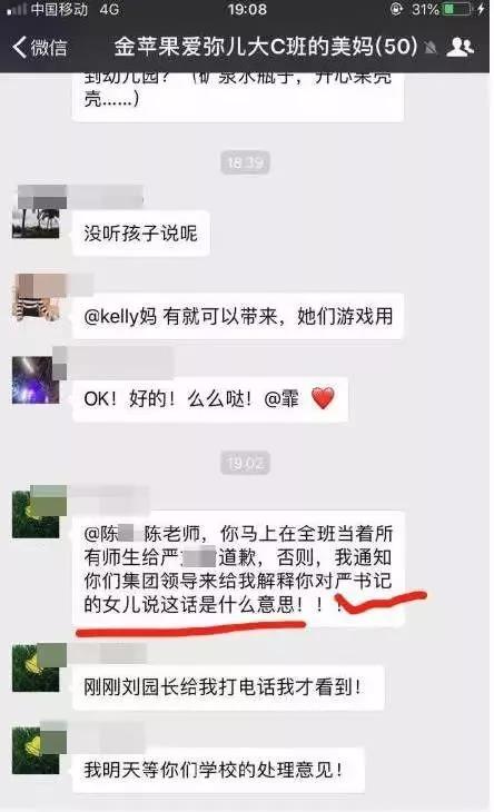 在成都某高檔幼兒園就讀的一位小女孩,經(jīng)常打班里的小朋友,老師決定給她單獨安排座位,遭女孩家長在家長群里威脅:“陳老師,你馬上在全班當著所有師生給嚴××道歉,否則我通知你們集團領導來給我解釋,你對嚴書記女兒說這話什么意思!”